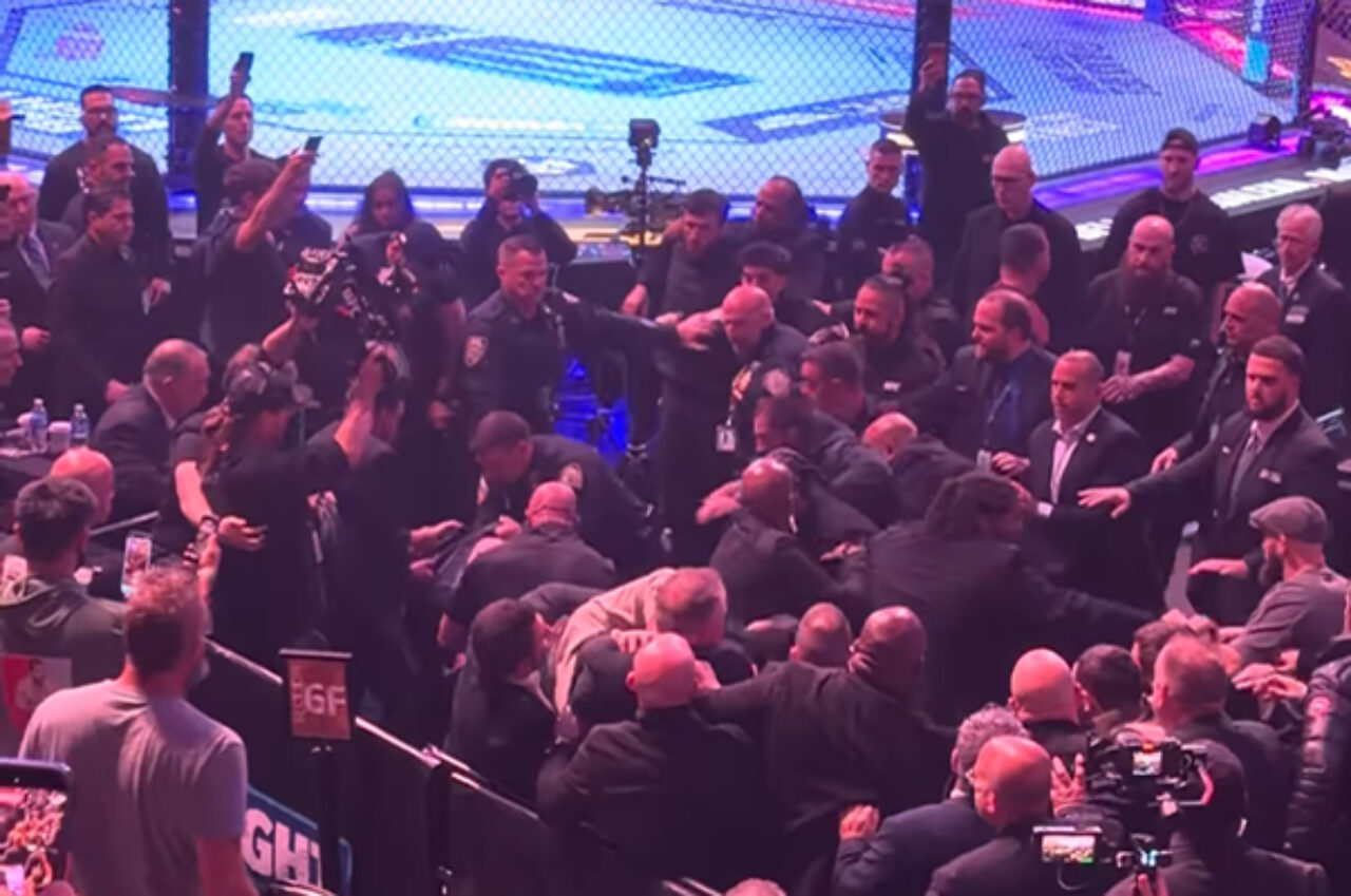 Just as the UFC 322 pay-per-view event began last night at Madison Square Garden in New York City a wild brawl broke out that even caught the attention of Daniel Cormier and Joe Rogan as they were doing their introductions live on camera.